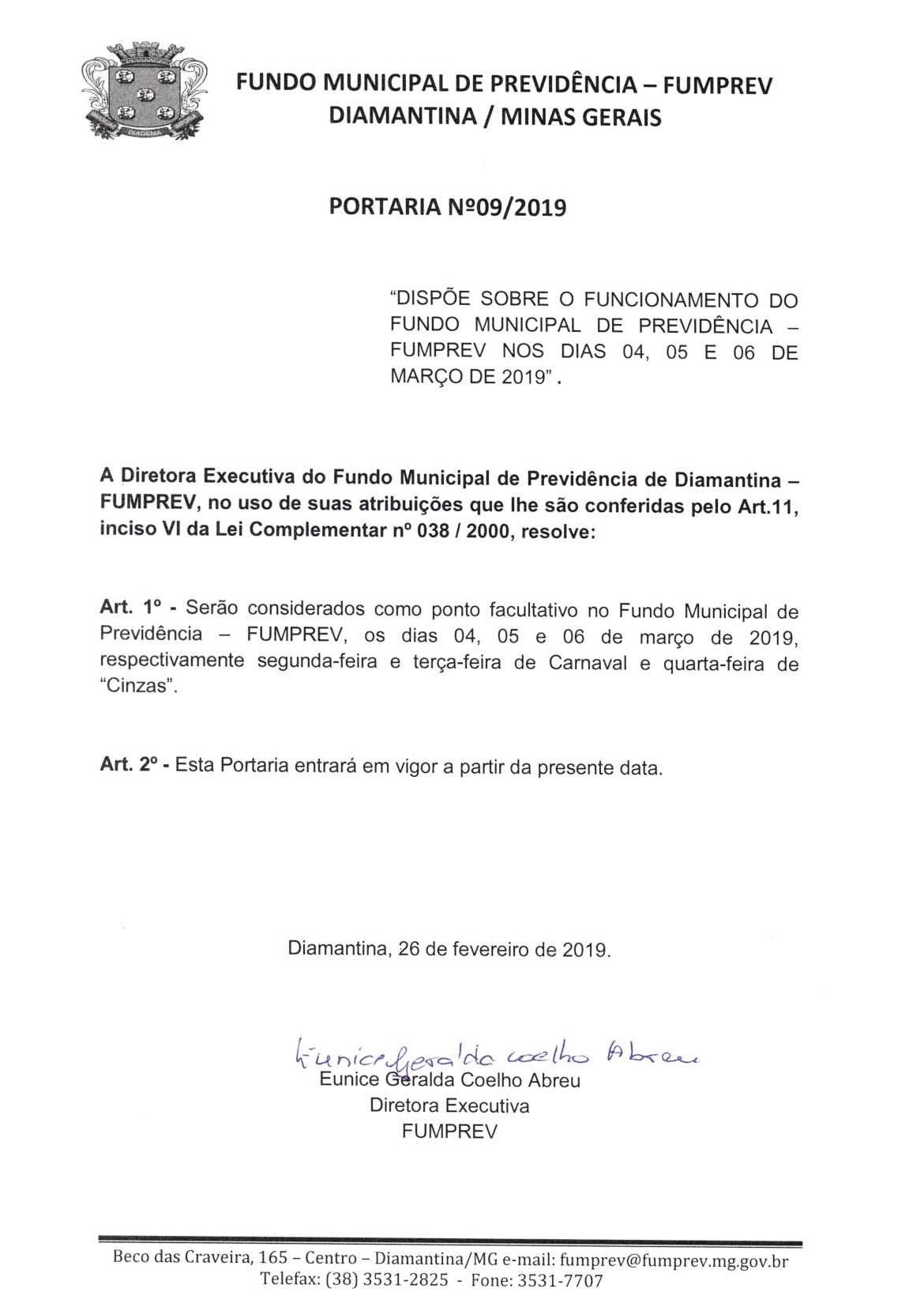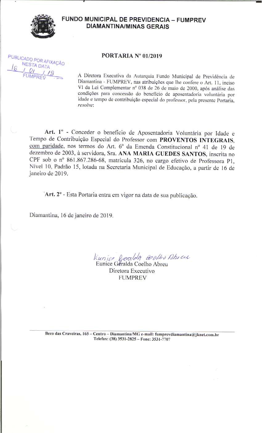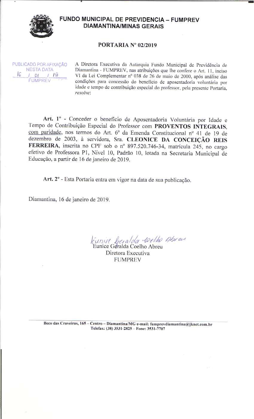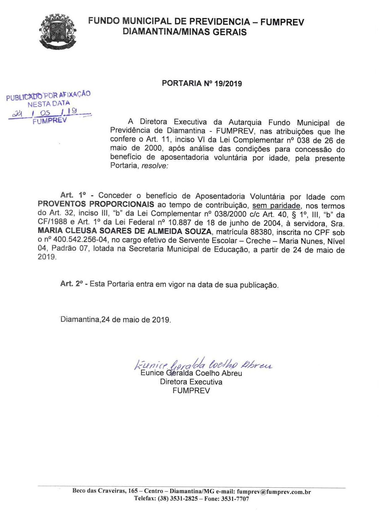 Portaria 019 - Maria Cleusa Soares de Almeida Souza
