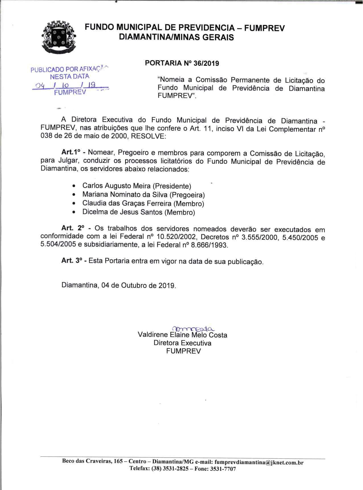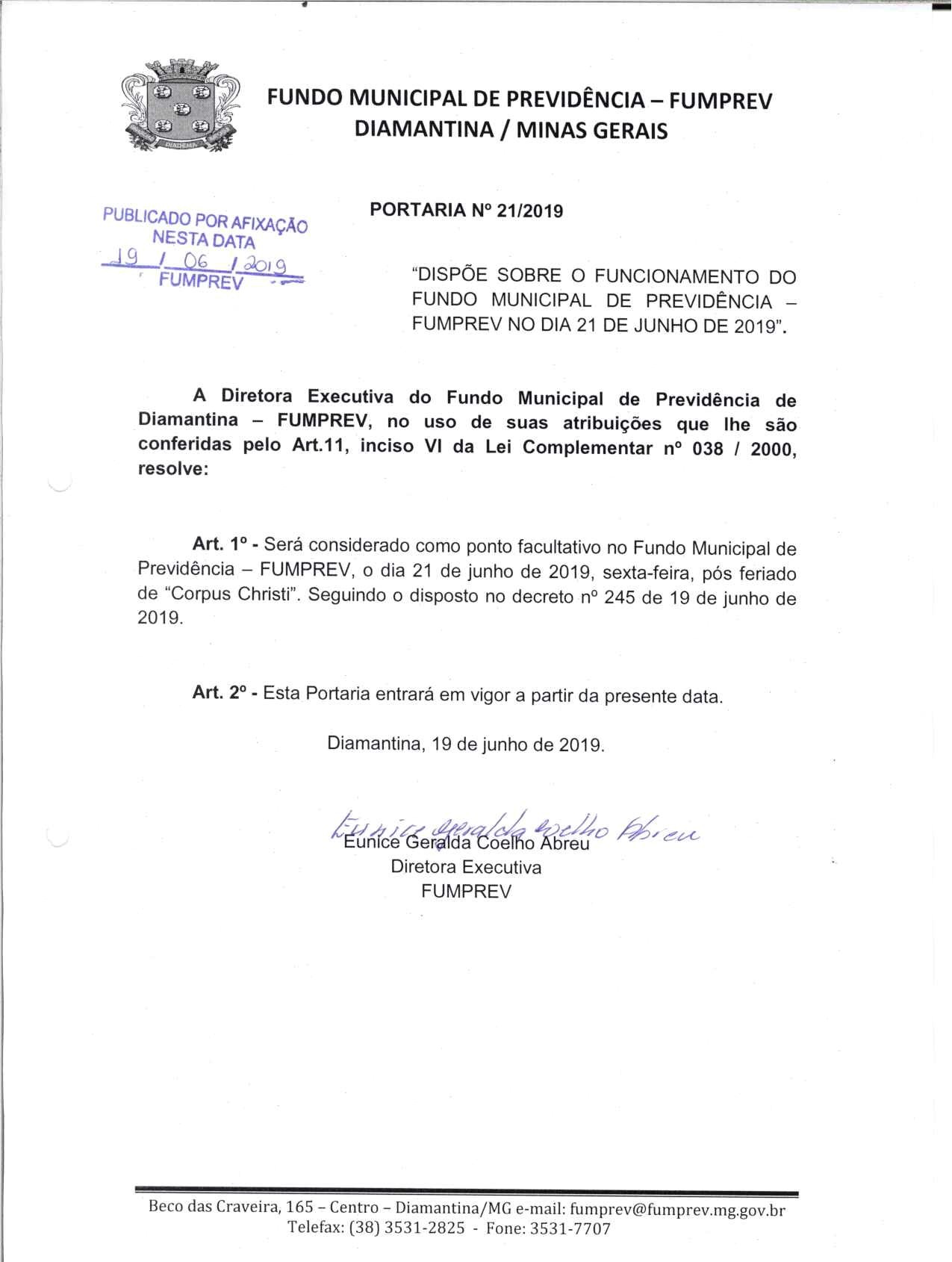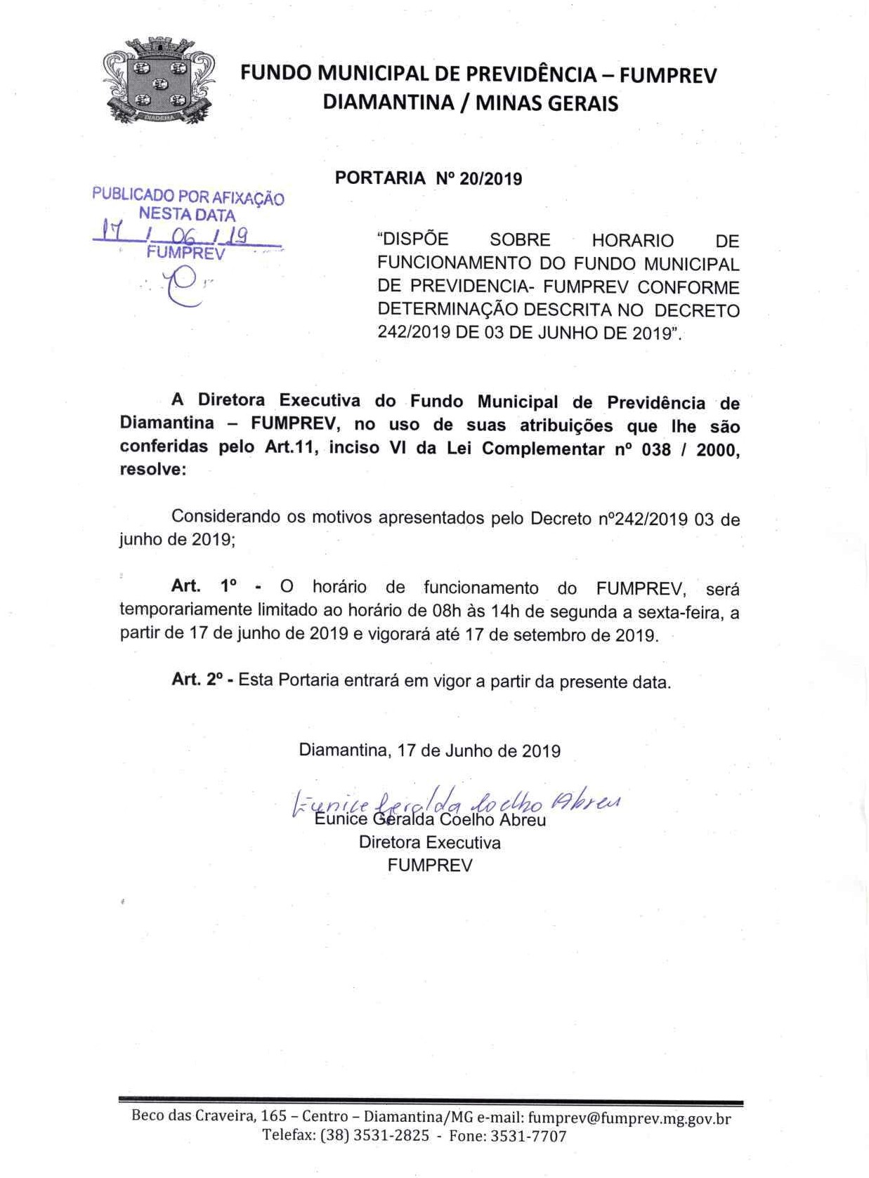 Portaria 019 - Maria Cleusa Soares de Almeida Souza