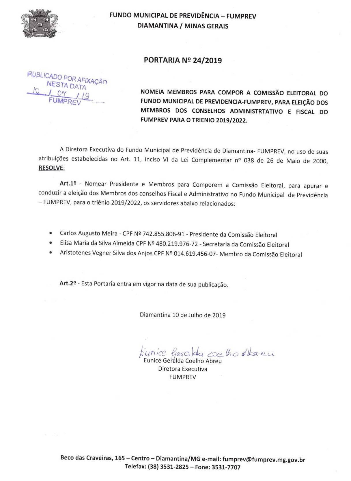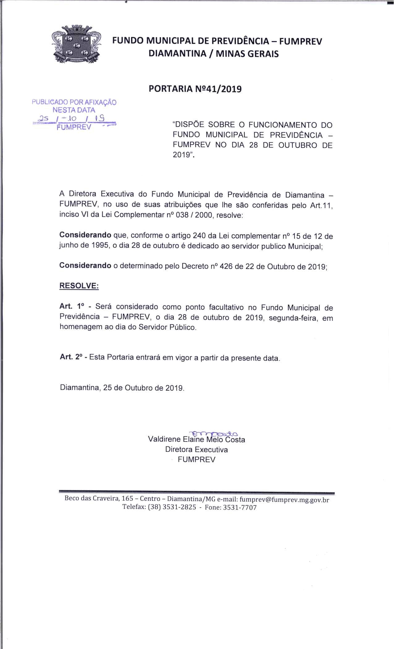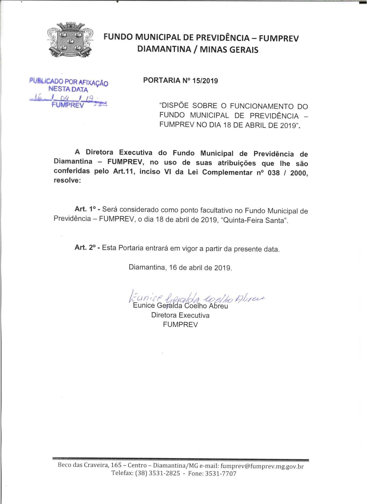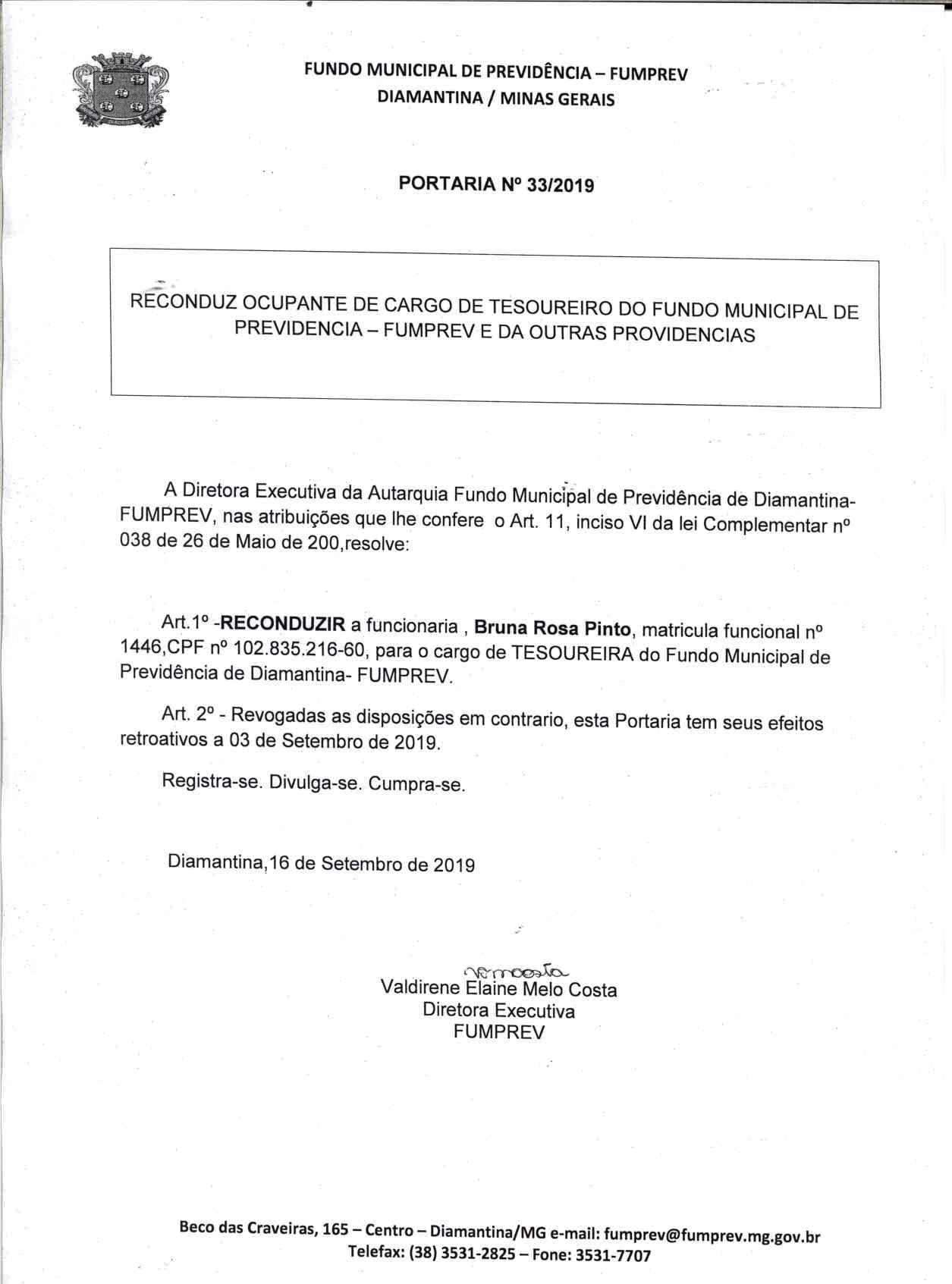 Portaria 019 - Maria Cleusa Soares de Almeida Souza