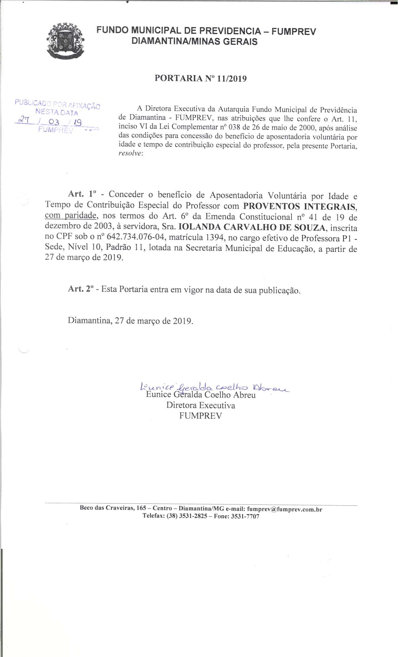 Portaria 11 - Iolanda Carvalho de Souza