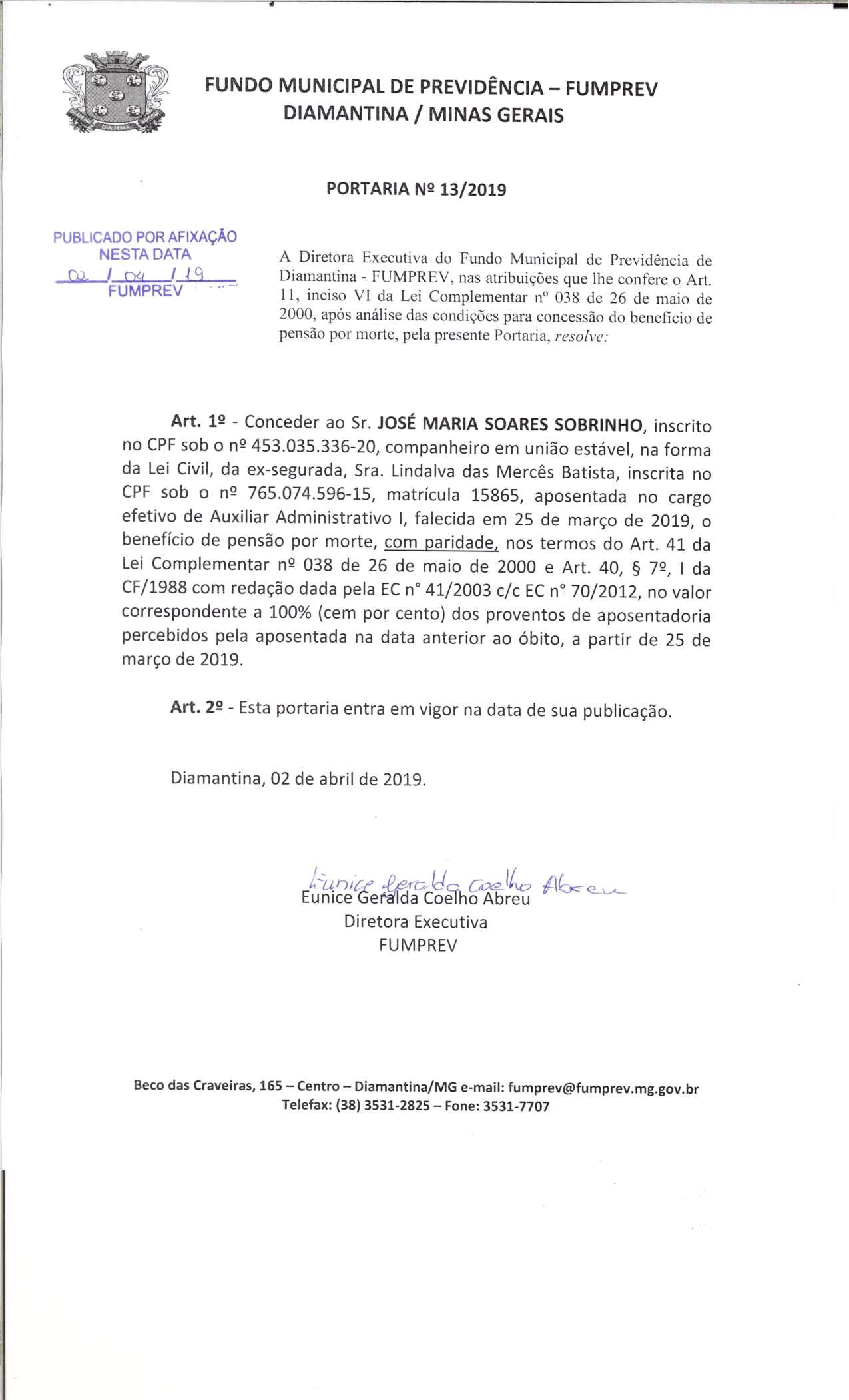 Portaria 013 - Jose Maria Soares Sobrinho