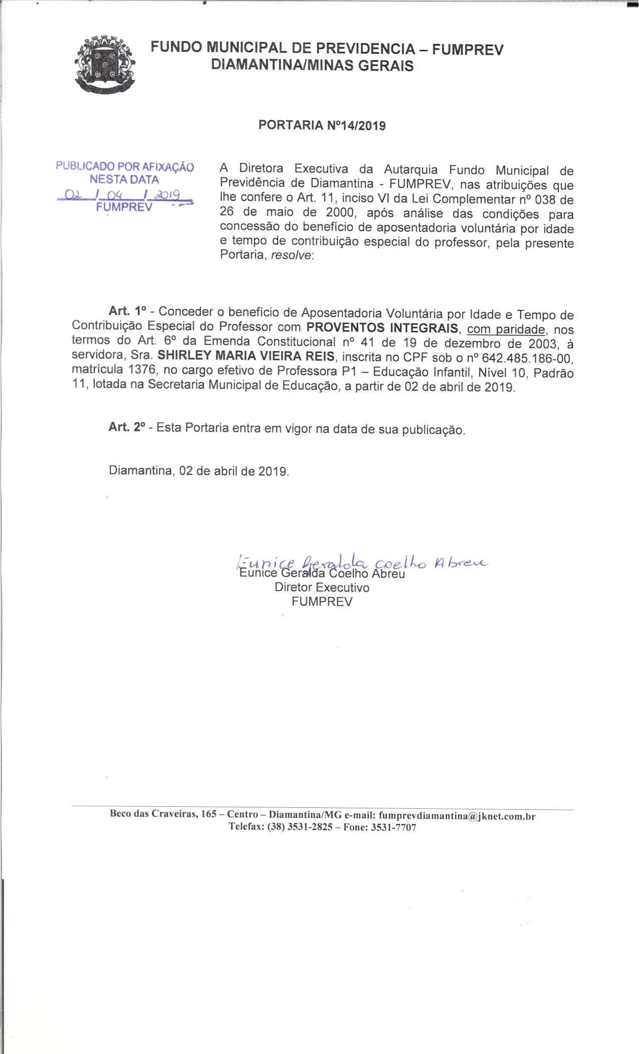 Portaria 014 - Shirley Maria Viera Reis