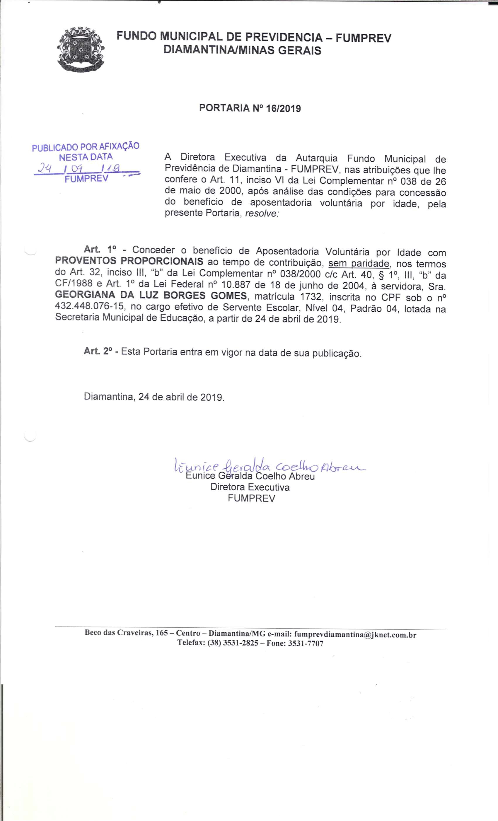 Portaria 016 - Georgiana da Luz Borges Gomes