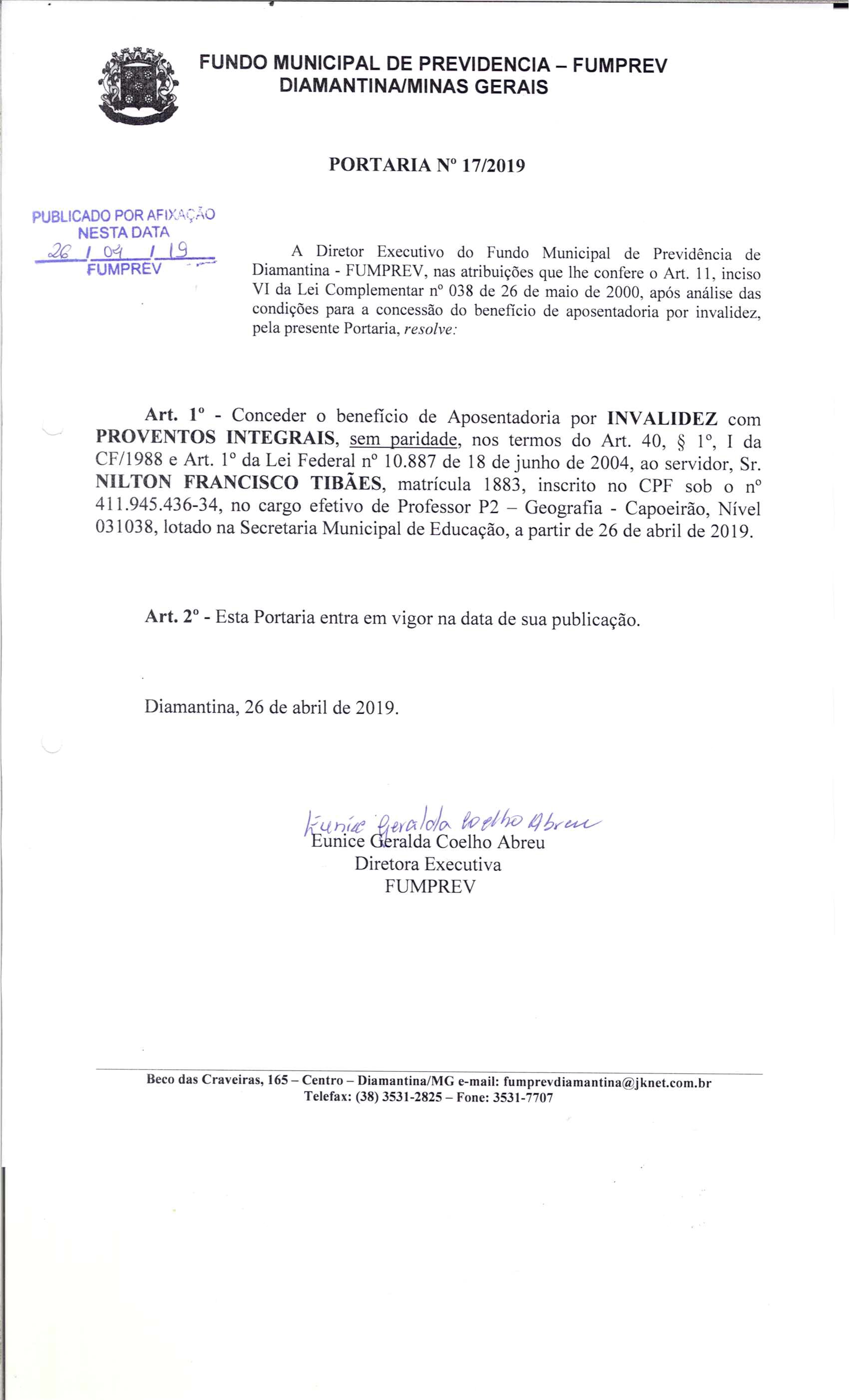 Portaria 017 - Nilton Francisco Tibães