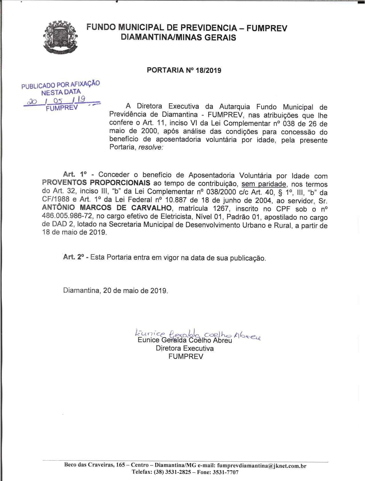 Portaria 018 - Antônio Marcos de Carvalho