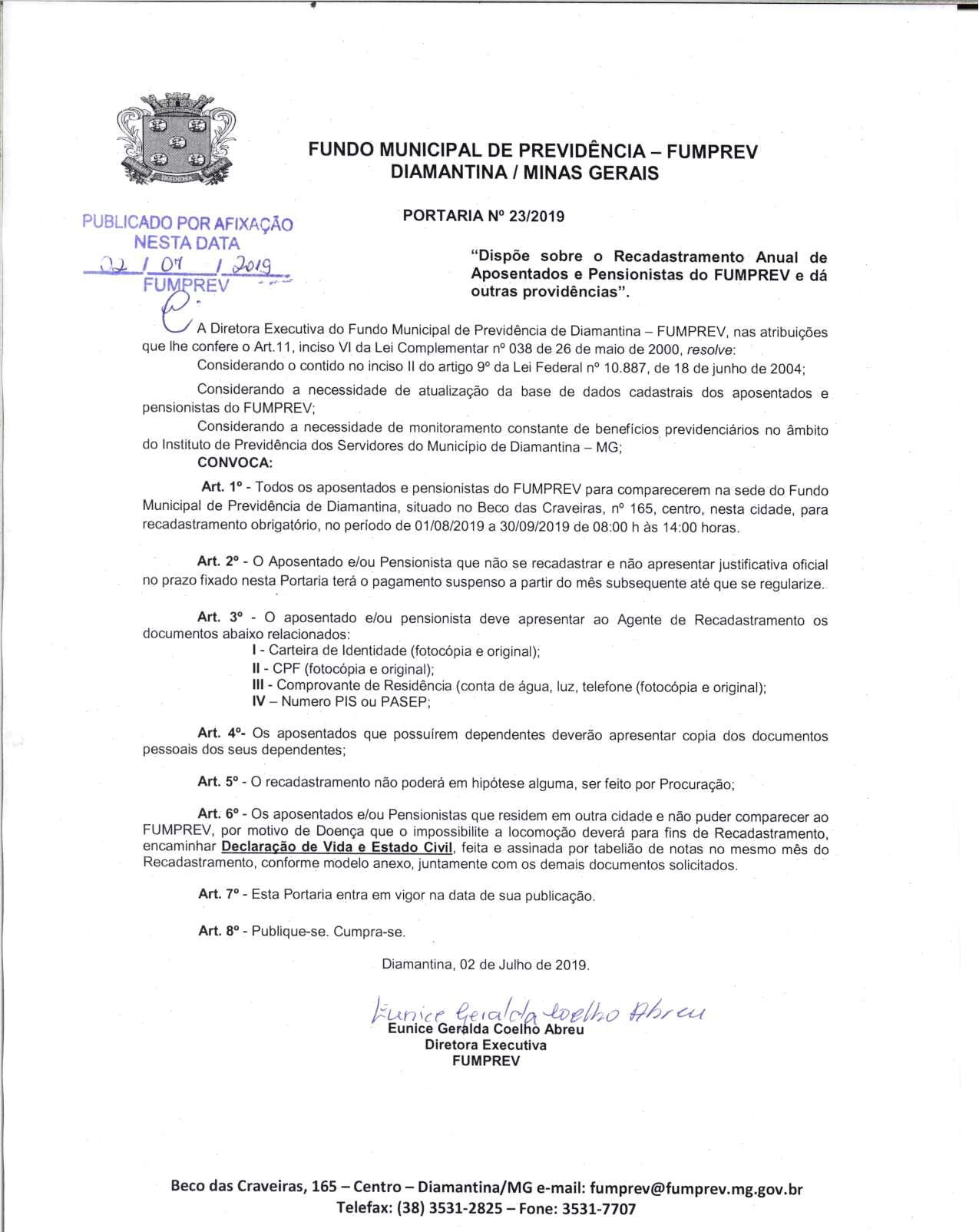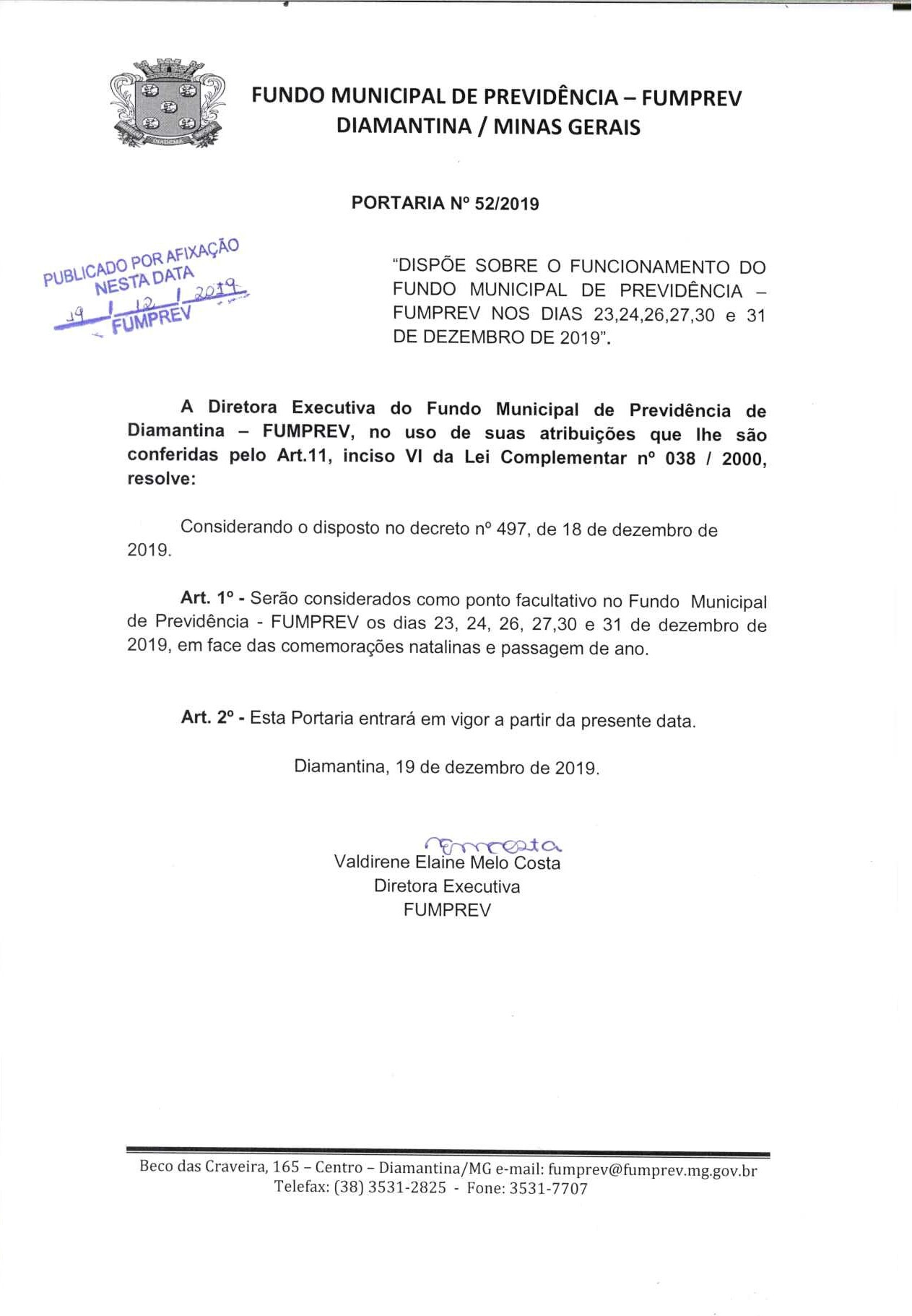 FUMPREV - FUNDO MUNICIPAL DE PREVIDÊNCIA DE DIAMANTINA