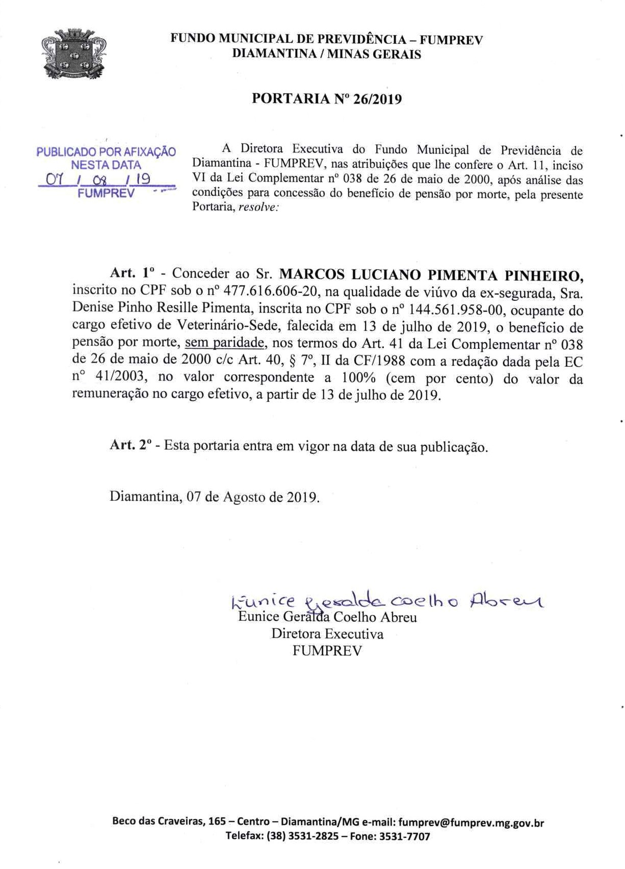Portaria Nº 26 - Marcos Luciano Pimenta Pinheiro
