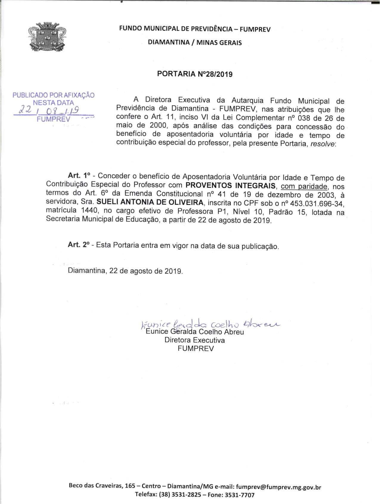 Portaria Nº 28 - Sueli Antonia de Oliveira