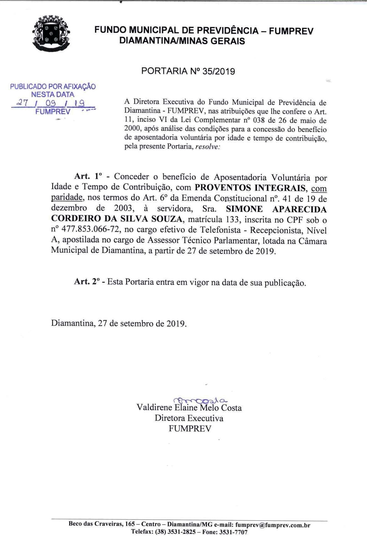 Portaria 35 - Simone Aparecida Cordeiro da Silva Souza