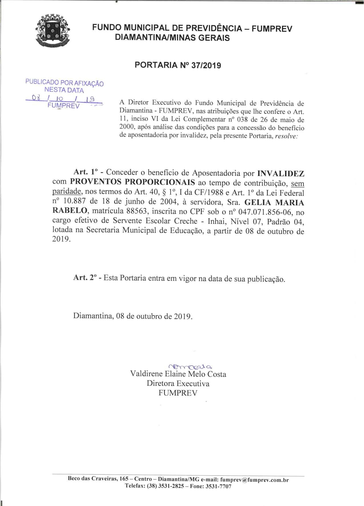 Portaria 37 - Gelia Maria Rabelo