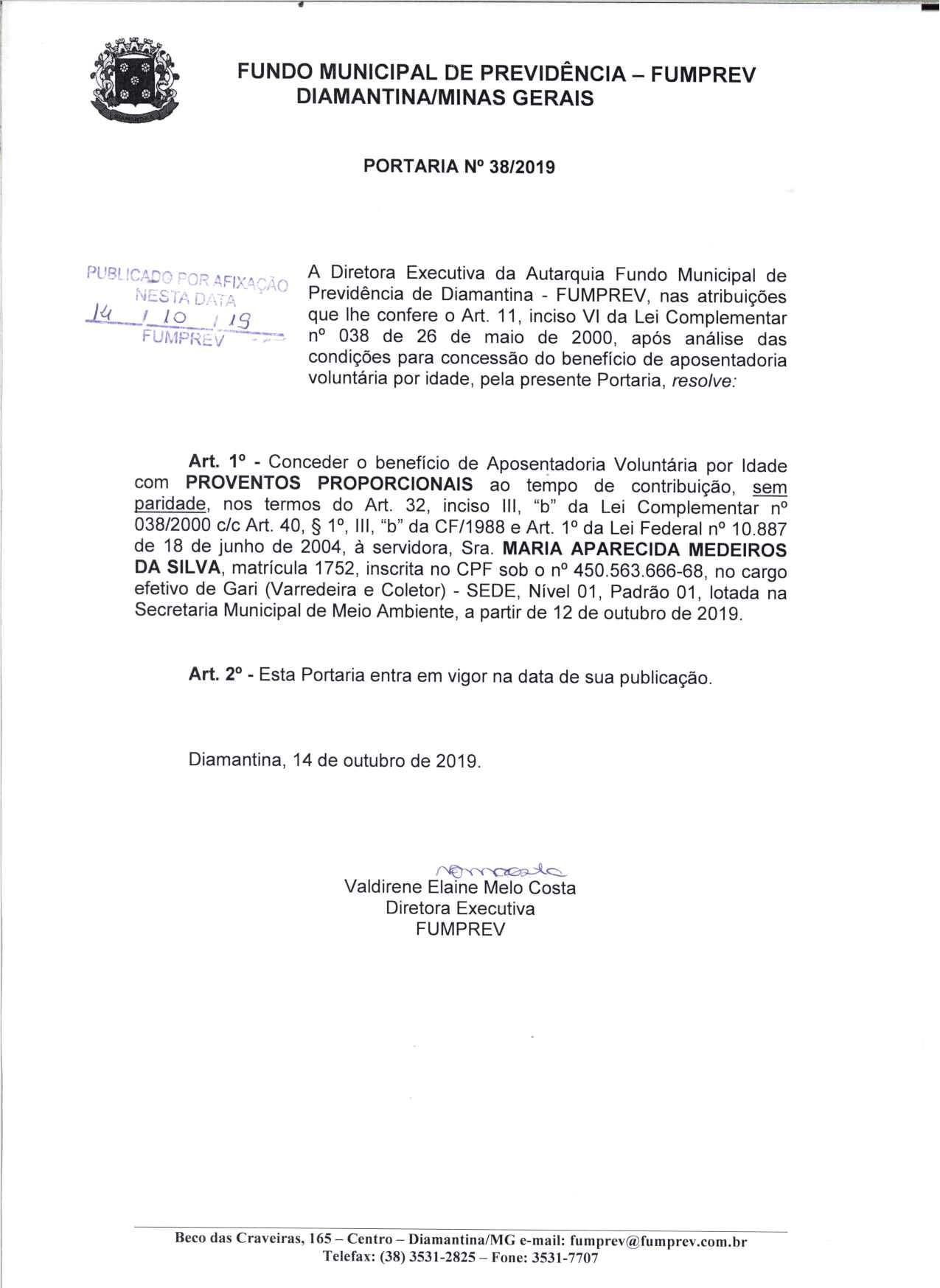 Portaria 38 - Maria Aparecida Medeiros
