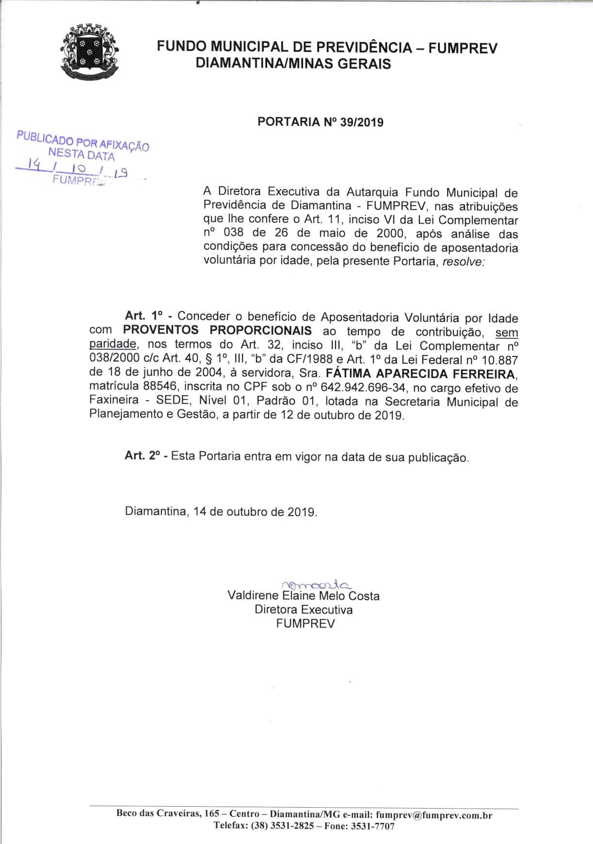 Portaria 39 - Fátima Aparecida Ferreira