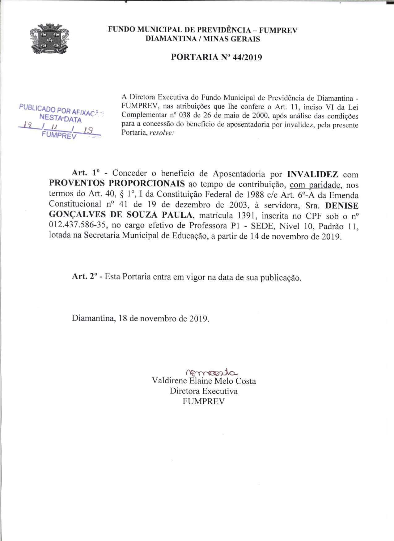 Portaria 44 - Denise Gonçalves de Souza Paula