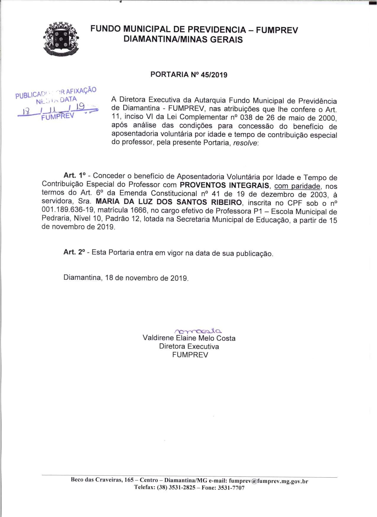 Portaria 45 - Maria da Luz dos Santos Ribeiro