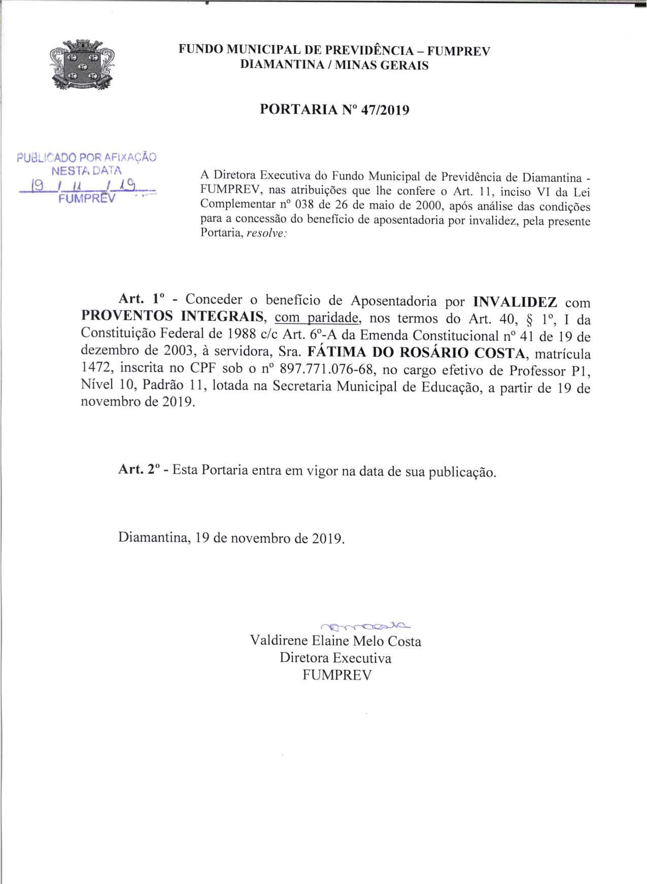Portaria 47 - Fátima do Rosário Costa