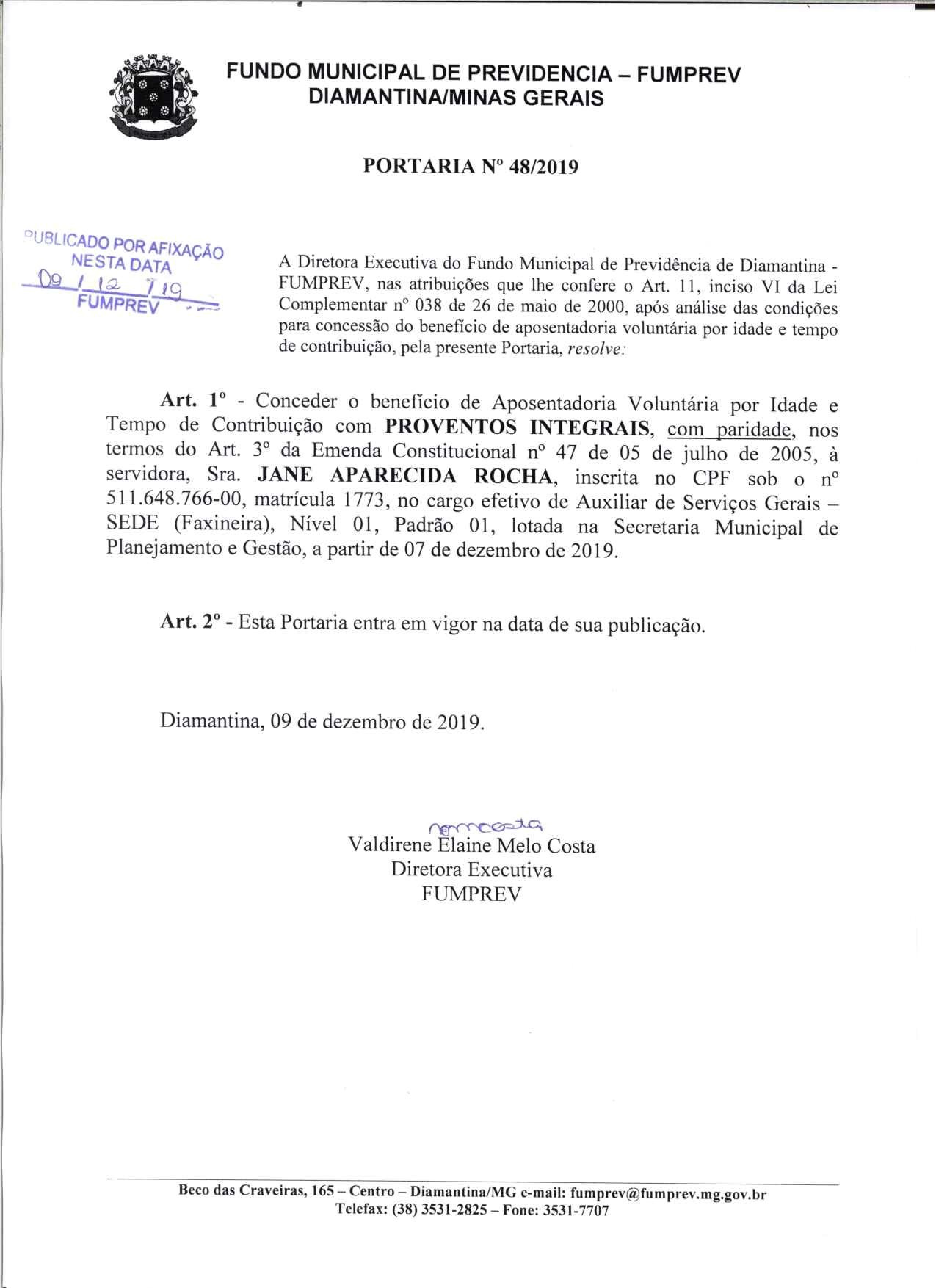 Portaria 48 - Jane Aparecida Rocha