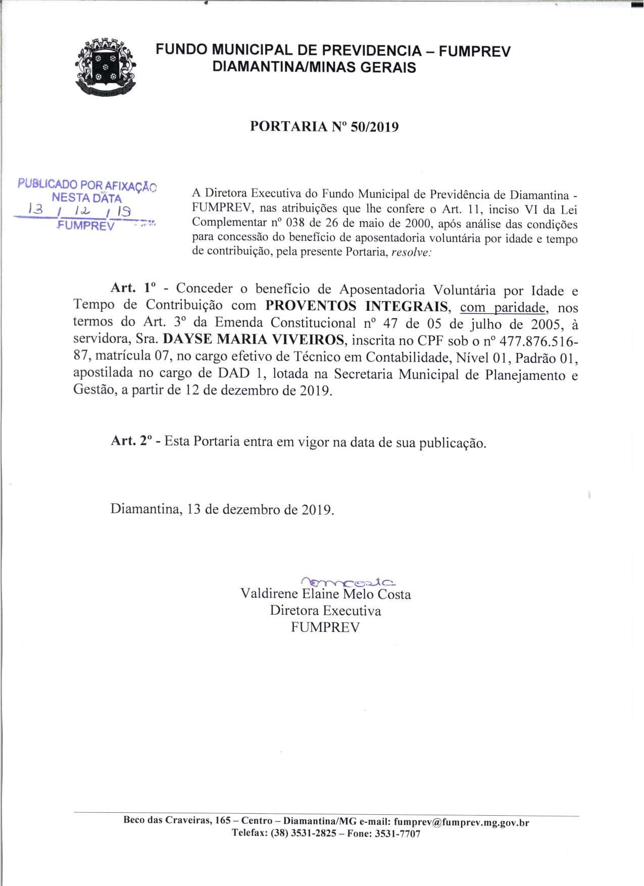 Portaria 50 - Dayse Maria Viveiros