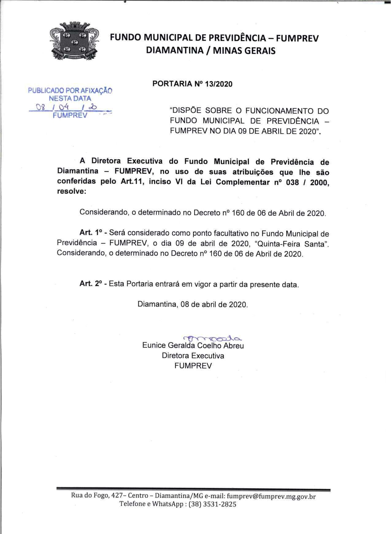 FUMPREV - FUNDO MUNICIPAL DE PREVIDÊNCIA DE DIAMANTINA